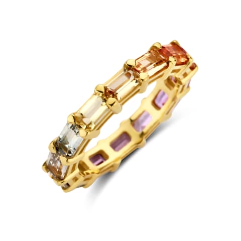 18-carat yellow gold ring set with natural rainbow-colored sapphires